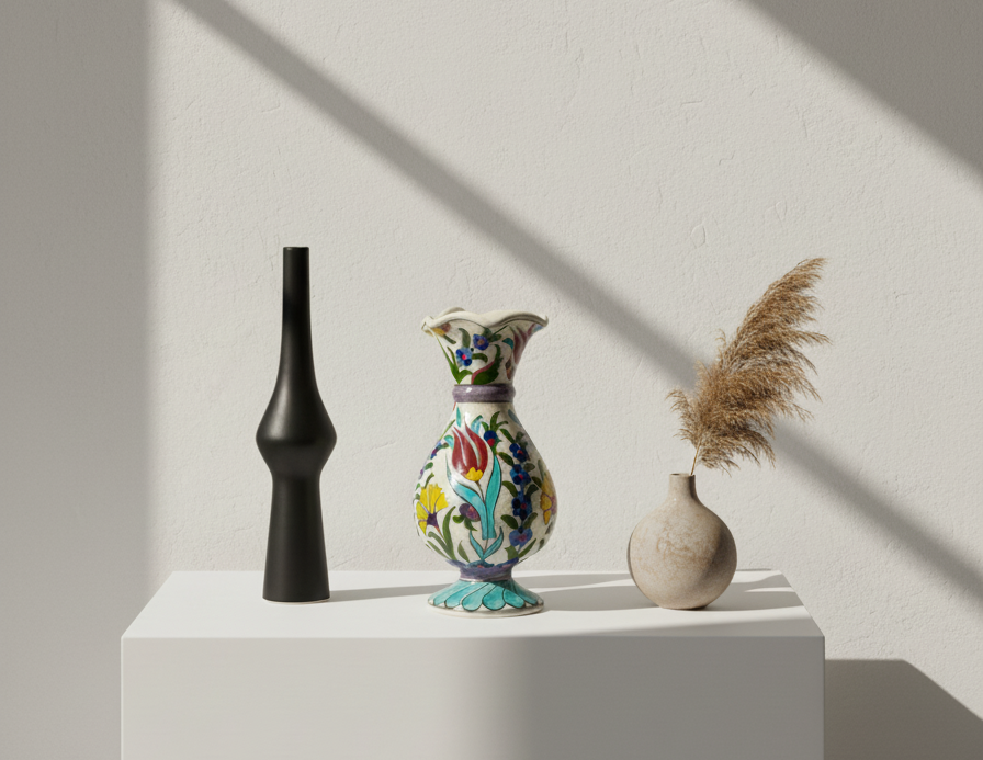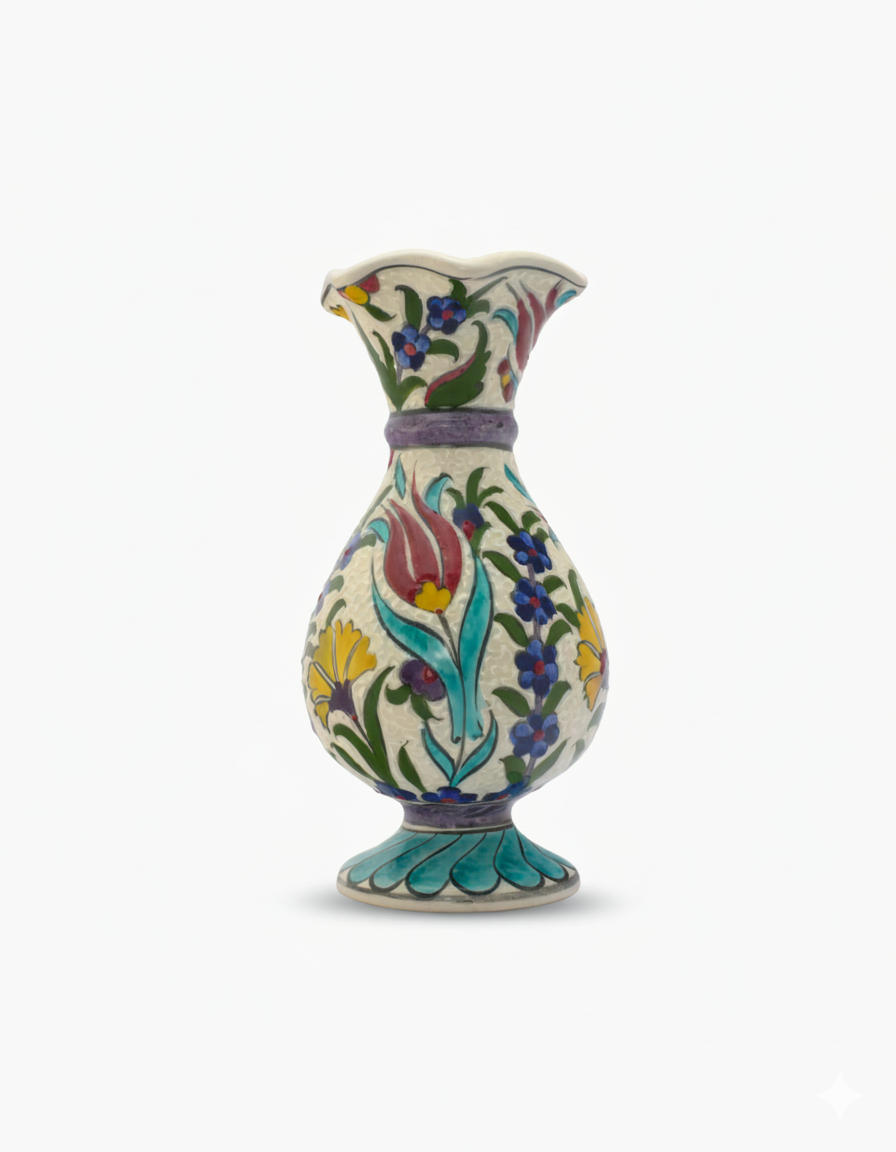 El Yapımı Çiçek Desenli Seramik Vazo 20 cm