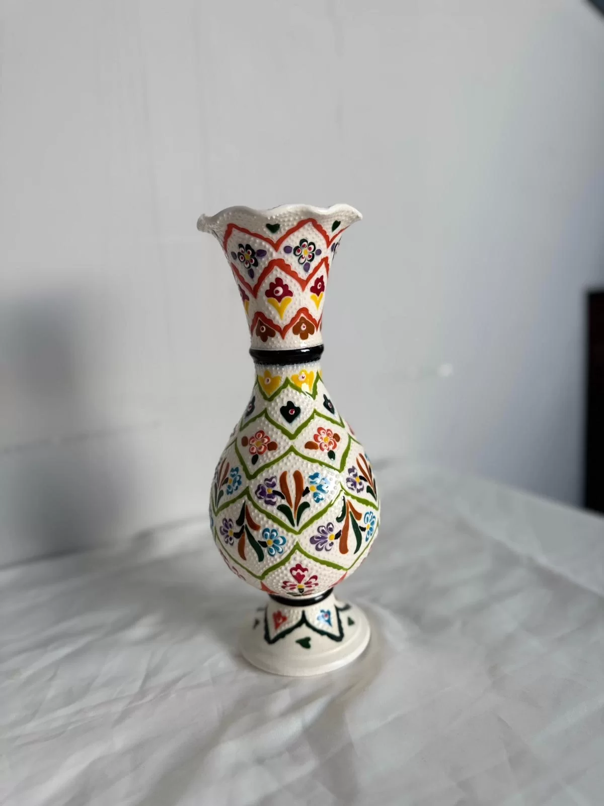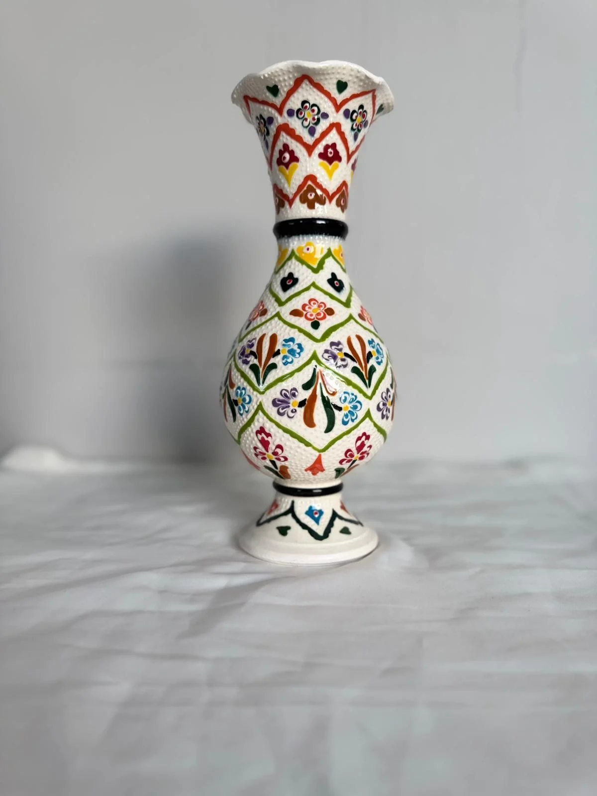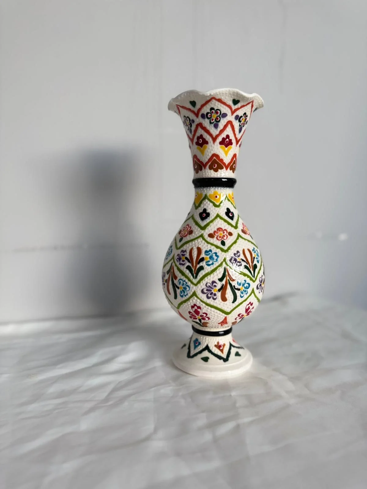 El Yapımı Çiçek Desenli Seramik Vazo 20 cm