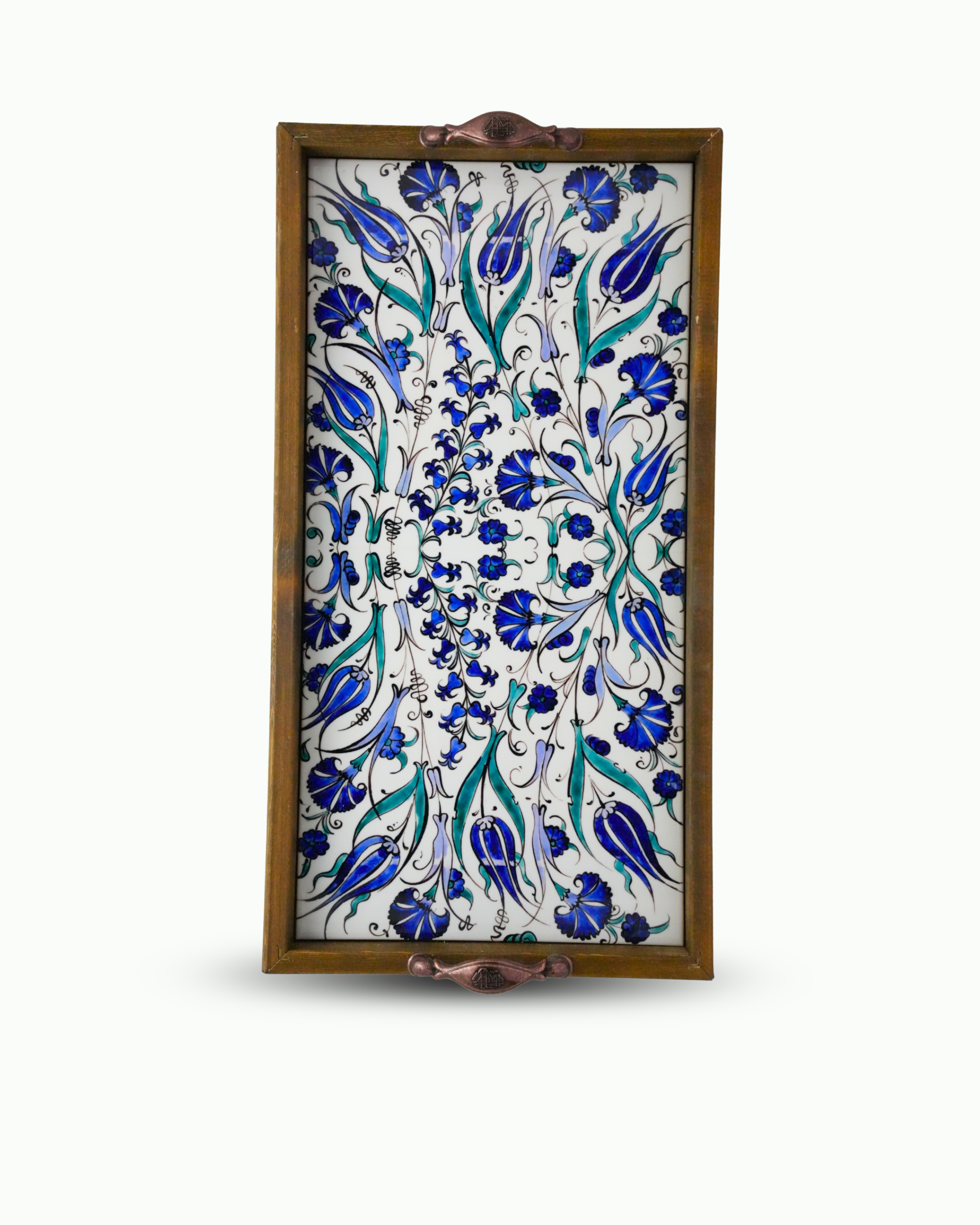 • Kaliteli Tasarım: Dayanıklı ahşap çerçeve içerisine yerleştirilmiş, canlı renklere sahip özel çini desenli seramik yüzey ve Antik Bakır/Bronz görünümlü metal kulplar.