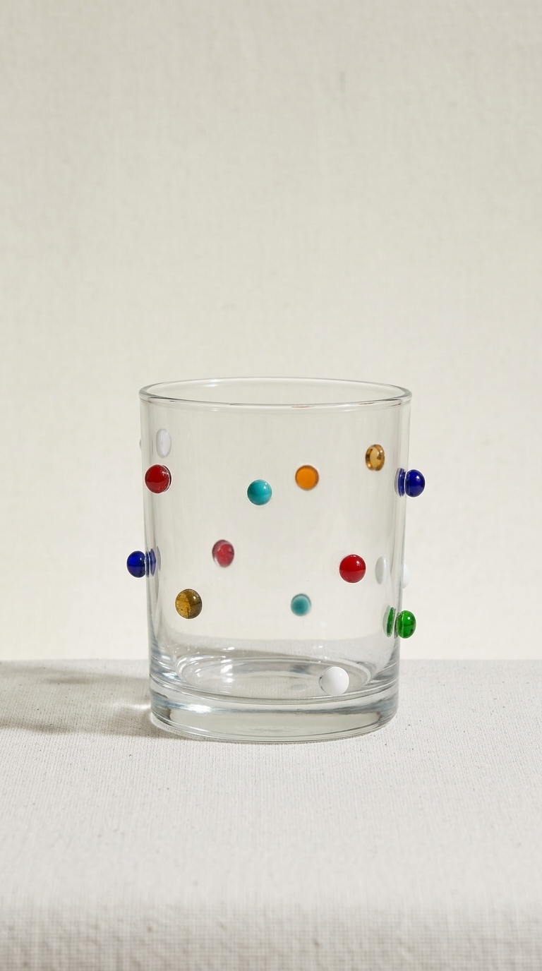 Sunumlarınıza renk ve zarafet katmaya hazır mısınız? Perlina Viski Bardağı, klasik cam tasarımını modern ve eğlenceli dokunuşlarla birleştiriyor. Üzerindeki el işçiliği hissi veren renkli cam boncuk detayları, her yudumda benzersiz bir doku ve görsel şölen sunar. Her bir boncuk elle yerleştirildiği için, her Perlina bardağı dünyada size özel ve tektir.