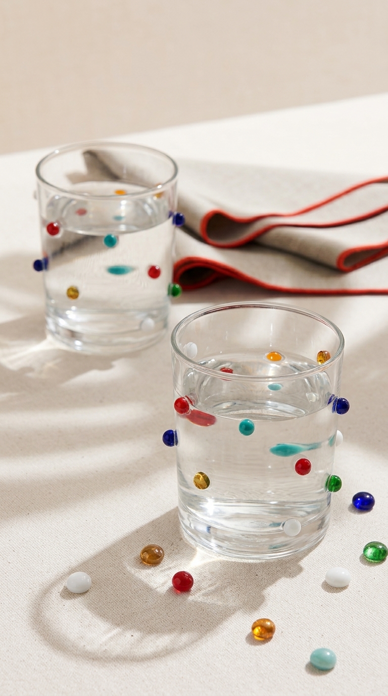 • Özgün Tasarım: Bardak yüzeyine işlenmiş farklı renklerdeki kabarık cam boncuklar, ürüne 3 boyutlu bir estetik kazandırır.